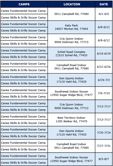 Canes Summer Soccer camps invite boys and girls of all ages and